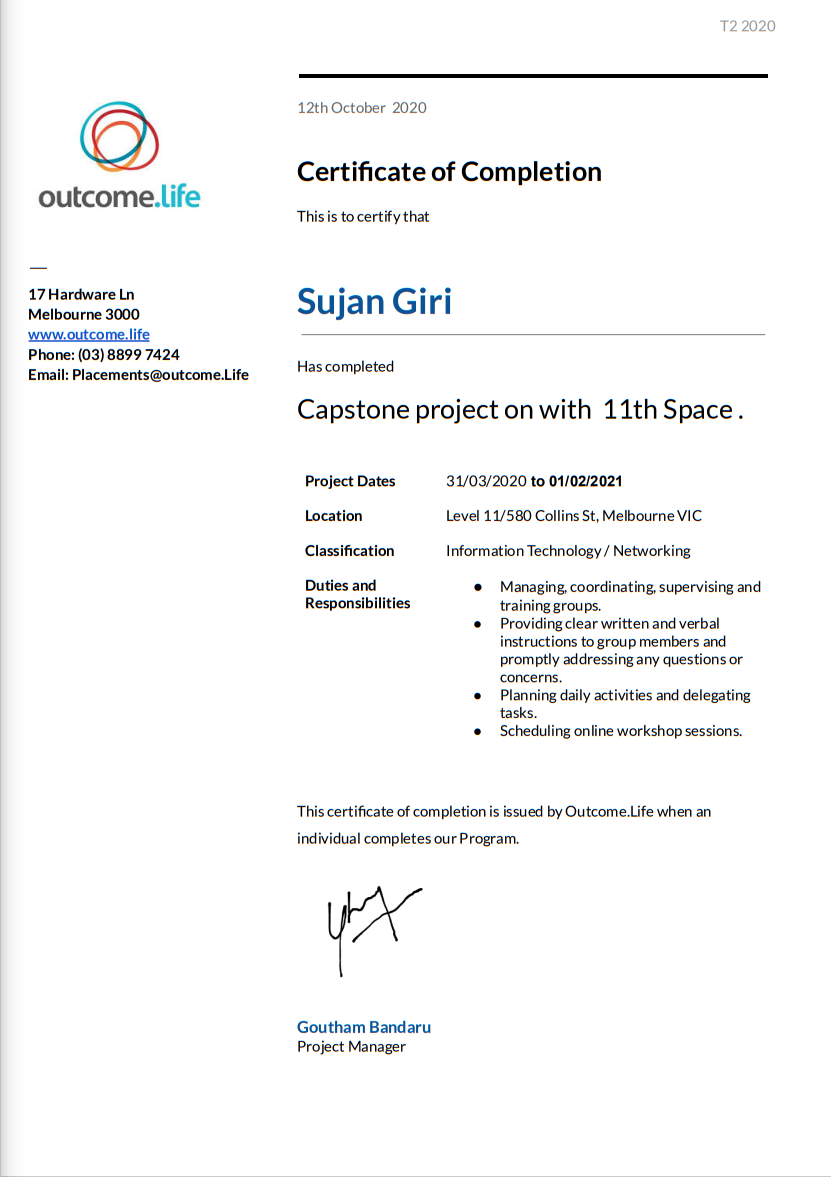 Bachelor's of Information Technology (Networking)Melbourne Institute of Technology, Melbourne, Australia